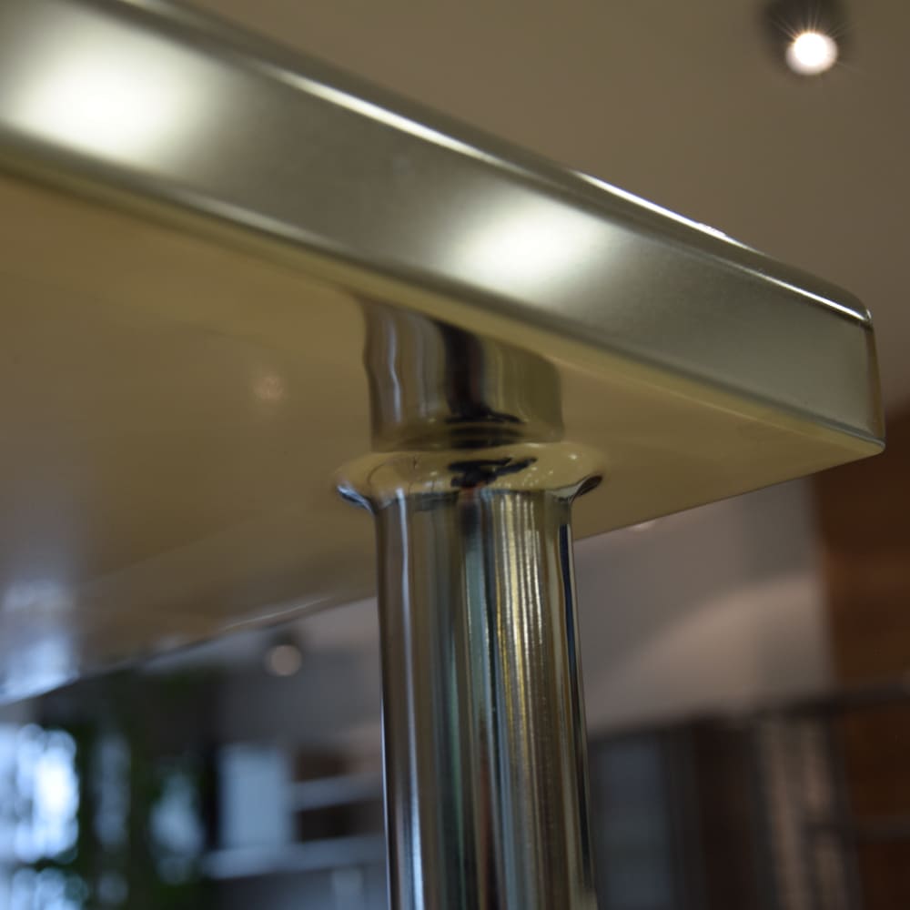 Wszystkie elementy stalowe poza blatami mogą być malowane proszkowo na dowolny kolor z palety RAL, co pozwala na pełne dopasowanie do aranżacji wnętrza. Powłoka proszkowa jest trwała, odporna na ścieranie, chemikalia i wilgoć. Dodatkowo stanowi estetyczne uzupełnienie konstrukcji stalowych – zarówno wewnętrznych, jak i zewnętrznych.