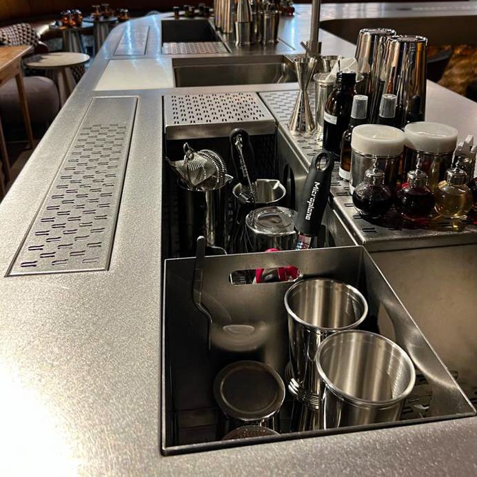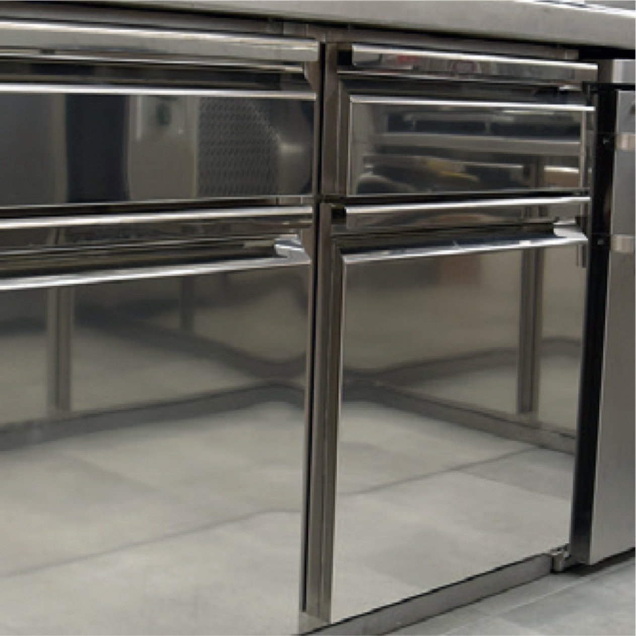 Wybrane fragmenty urządzeń i mebli – zwłaszcza te nie narażone na częsty kontakt z użytkownikiem – są ręcznie polerowane do wysokiego połysku. Takie wykończenie podkreśla prestiż wykonania i ułatwia czyszczenie. Polerowanie stosowane jest również tam, gdzie kluczowa jest elegancja i reprezentacyjny charakter elementu.