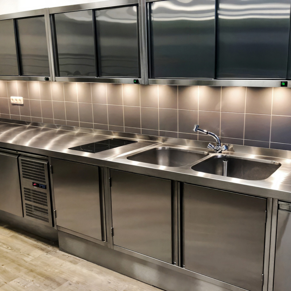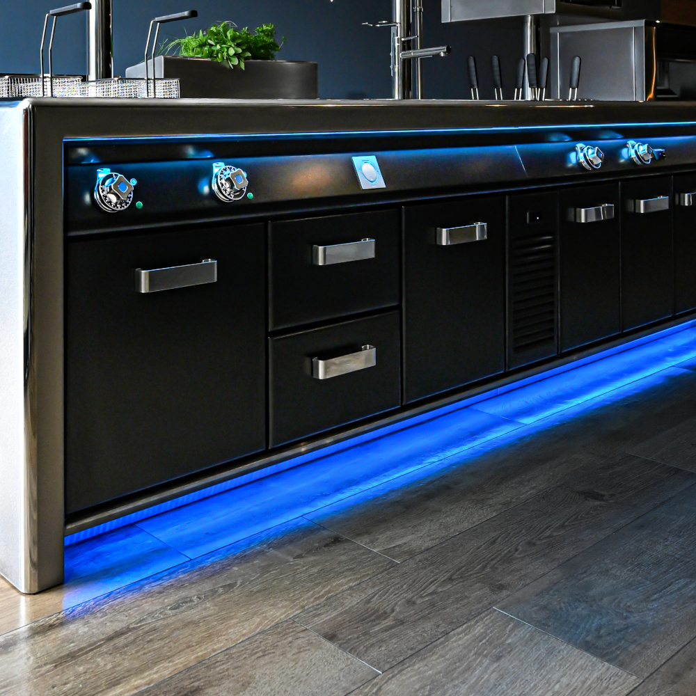 i urządzeniach ze stali nierdzewnej zwiększa komfort pracy w strefach roboczych, szczególnie w przestrzeniach zamkniętych, jak witryny czy szafki. Diody LED są energooszczędne, trwałe i można je dostosować pod względem barwy światła. To także nowoczesny akcent wizualny, podkreślający wysoką prezencję produktu.