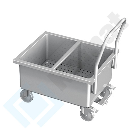 - stoły z basenami mogą być wyposażone w koła o średnicy 100 lub 125 mm, w tym dwie sztuki z hamulcem. Koła mają bieżnię z pełnej gumy w kolorze niebieskoszarym o twardości wg skali Shore'a A80, mogą przenosić obciążenie max 800 N,