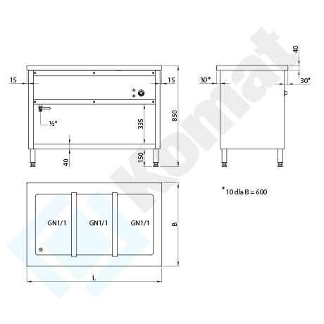 | 1135 | 600 | 850 | 3xGN1/1 | 30°C÷95°C | 230/50 | 2400 |