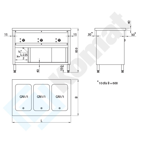 | 1165 | 700 | 850 | 3xGN1/1 | 30°C÷95°C | 230/50 | 2400 |