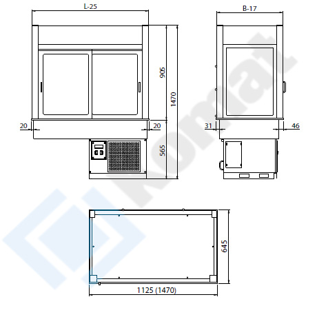 | KL8-61.7003 | 1125 | 645 | 1470 | 3xGN1/1 | 1090x575 | 365 |
