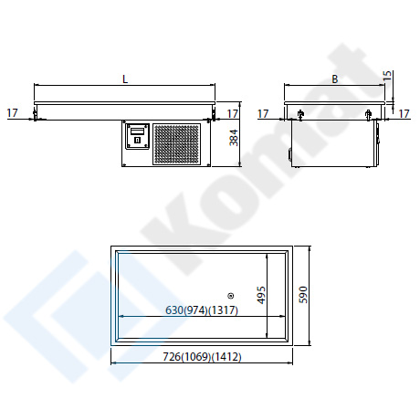 Urządzenie do zabudowy w dowolny blat. Płyta chłodnicza z powierzchnią zagłębioną przy obrzeżach, z własnym agregatem chłodniczym. Wykonanie stal nierdzewna AISI 304. Cyfrowy sterownik z wyświetlaczem temperatury.