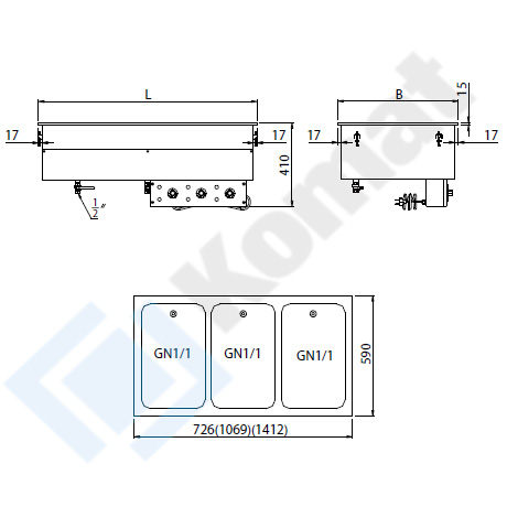 | KL6-21.0033 | 1069 | 590 | 410 | 3xGN1/1 | 1039x560 | 2400 |