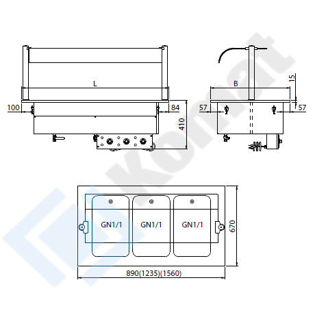 | KL7-21.0033 | 1235 | 670 | 410 | 3xGN1/1 | 1054x560 | 2400 |