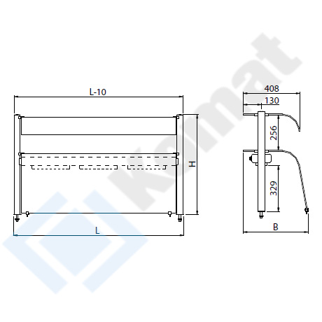Nadstawka z pełną hartowaną szybą giętą na dole i krótką szybą gięta na górze. Dwa nierdzewne słupki boczne o średnicy Ø45mm wraz z rozetami przy blacie. Most instalacyjny pomiędzy słupkami z oświetleniem fluorescencyjnym.