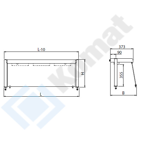 Pełna szyba na froncie mocowana w uchwytach nierdzewnych przy blacie. Półka górna wykonana ze stali nierdzewnej AISI 304, z oświetleniem halogenowym. Dwa słupki boczne o średnicy Ø45mm wraz z rozetami nierdzewnymi.