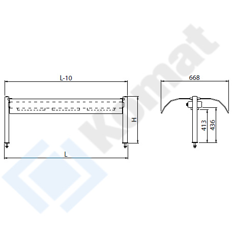 Krótka hartowana szyba gięta nadstawki z obu stron, jako osłona higieniczna do samoobsługi konsumentów. Dwa nierdzewne słupki boczne o średnicy Ø45mm wraz z rozetami nierdzewnymi przy blacie. Oświetlenie fluorescencyjne.