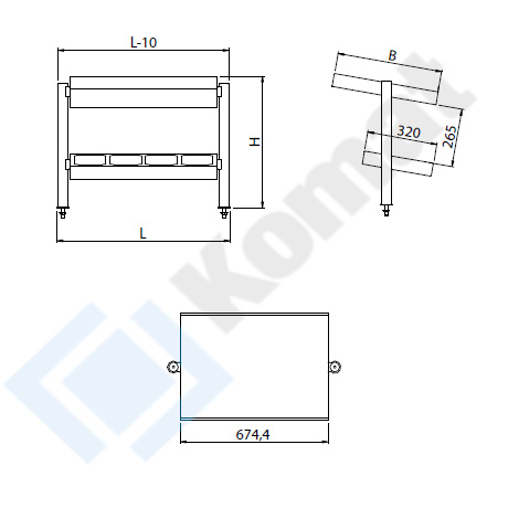Pomocnik kelnerski 2-poziomowy wykonany ze stali nierdzewnej AISI 304. Górny poziom płaski z rantem z przodu, dolny poziom jako ramka na 4-pojemniki GN1/4 na sztućce. Słupki boczne wraz z rozetami nierdzewnymi przy blacie.