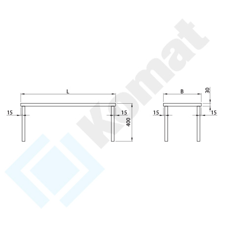 - półka nadstawki o grubości #30mm wykonana z blachy o grubości #1.0mm wzmocniona profilem metalowym