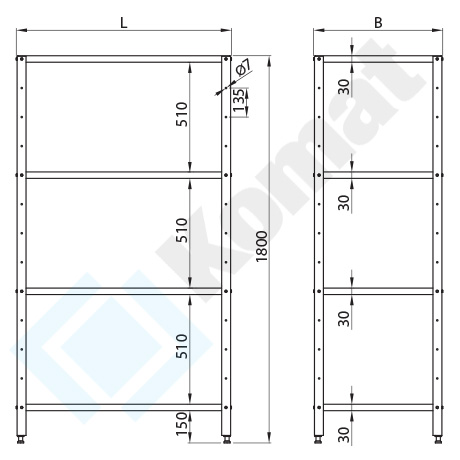 - przestawność półek zapewniona w odstępach co 135mm