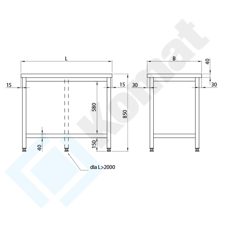 - możliwość wykonania stołu o wymiarach innych niż wskazane w tabeli po uprzedniej konsultacji z pracownikiem działu handlowego