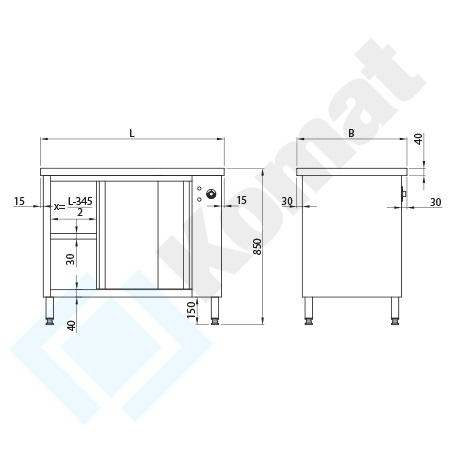 Stół centralny przelotowy z szafką grzewczą