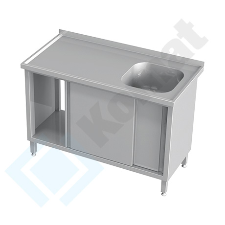 Stół ze zlewem 2-komorowym i drzwiami suwanymi