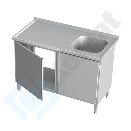 Stół ze zlewem 2-komorowym i drzwiami skrzydłowymi