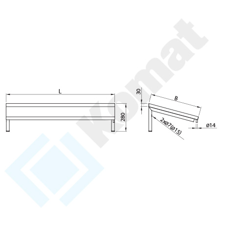 Półka 1-poziomowa skośna, nieprzestawna, dostosowana szerokością do koszy od zmywarki 500x500 mm.