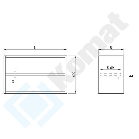 Szafka wisząca otwarta bez drzwi, z półką przestawną. Standardowa wysokość szafki H=600 mm.