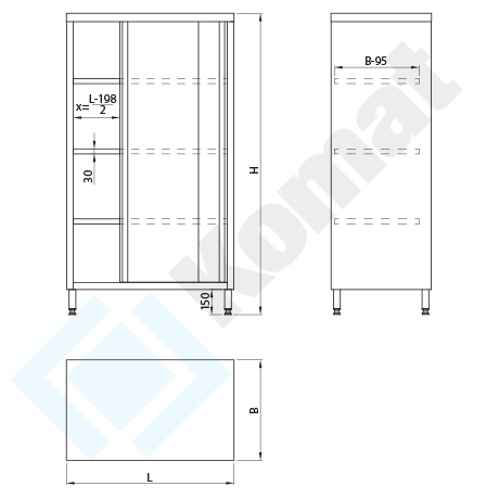 - 3x półka przestawna wykonana z blachy #0.8mm, o grubości 30mm