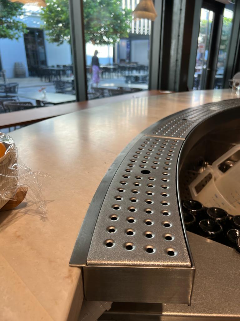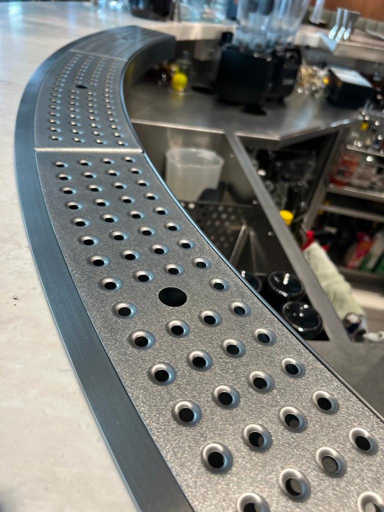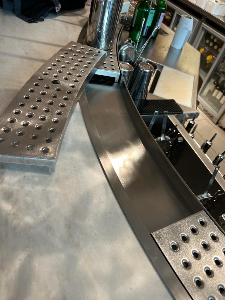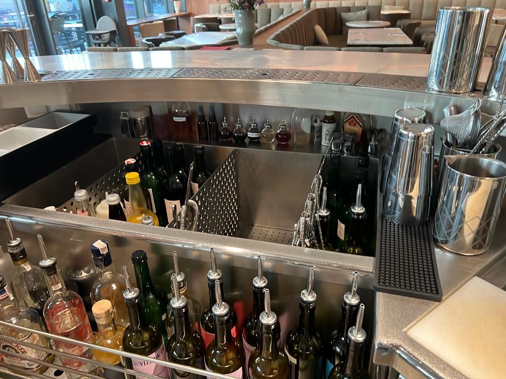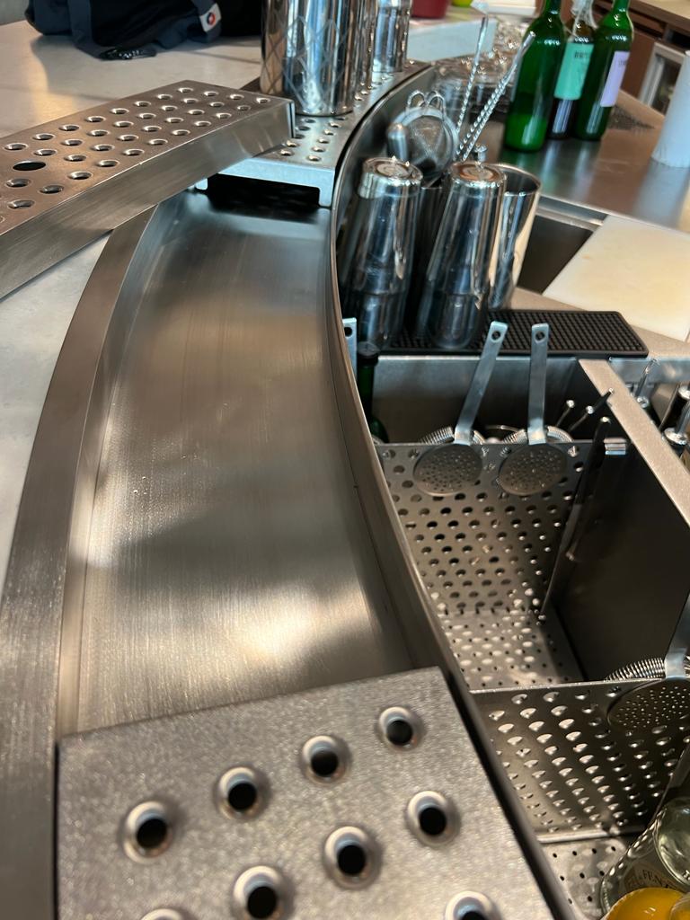 Linię barową do Bibi’s wykonał Komat. Bar został zaprojektowany z myślą o ergonomii pracy barmanów, oferując m.in. indywidualnie dopasowane moduły, schładzacze, pojemniki i zlewy. Całość wpisuje się w nowoczesny, minimalistyczny styl lokalu, podkreślając jego charakter i jakość serwisu.