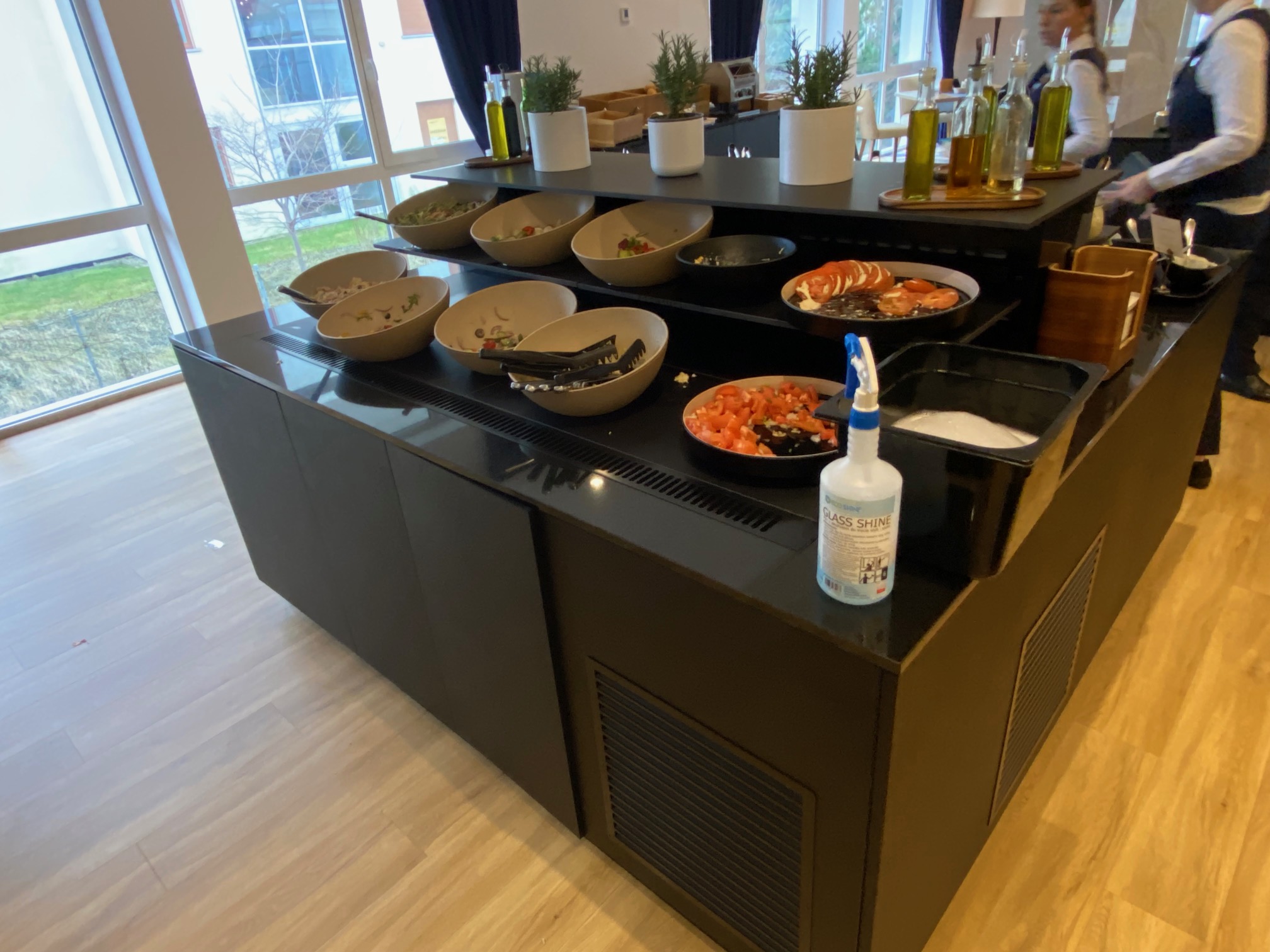 Dla tak wyjątkowego obiektu firma Komat zaprojektowała i dostarczyła nowoczesne bufety, idealnie wpisujące się w estetykę i funkcjonalność przestrzeni Grand Lubicz. Bufety wyróżniają się wysoką jakością wykonania, nowoczesnym designem oraz technologicznymi rozwiązaniami, które umożliwiają komfortowe serwowanie potraw w różnej formie – zarówno ciepłych, jak i zimnych.