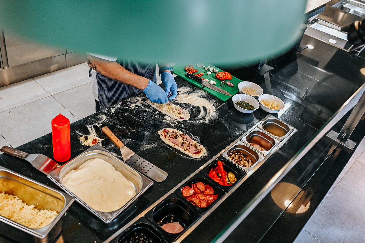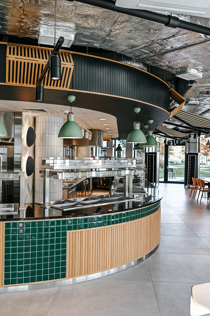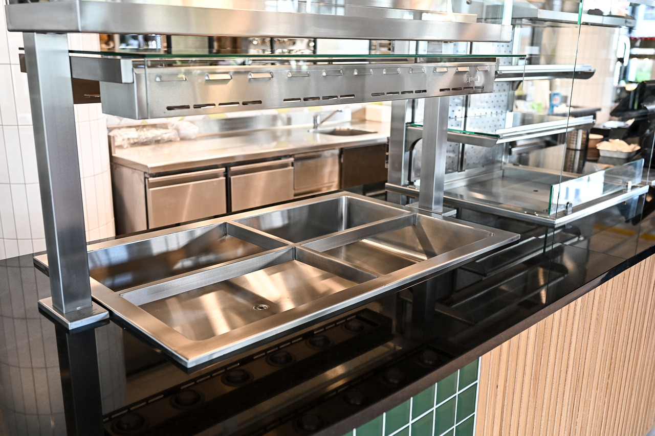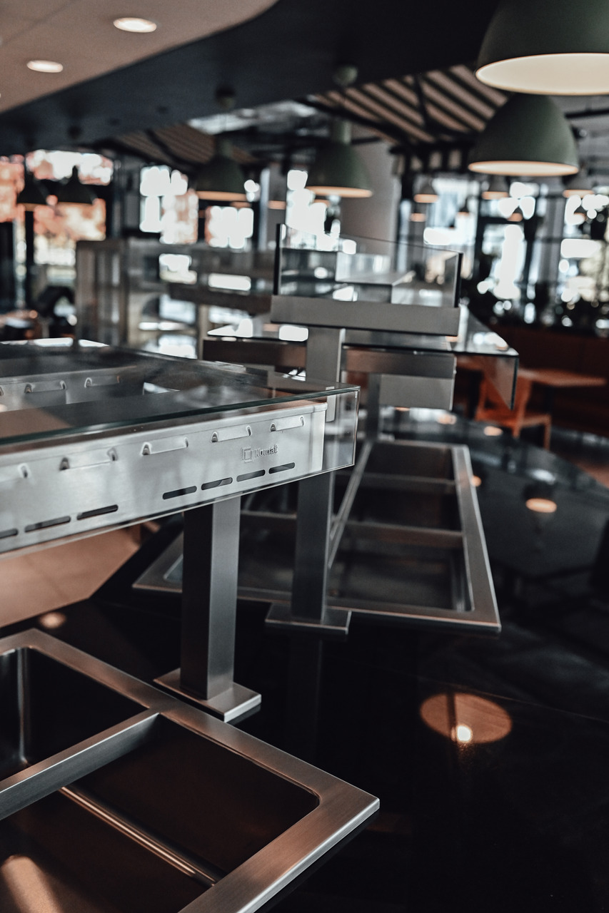 Ciąg wydawczy, wykonany przez firmę Komat, to nowoczesne rozwiązanie, które umożliwia sprawną organizację wydawania posiłków i napojów w lokalu. Dzięki zastosowaniu odpowiednich urządzeń i technologii, proces ten stał się bardziej efektywny, co znacząco poprawia komfort pracy personelu oraz jakość obsługi.
