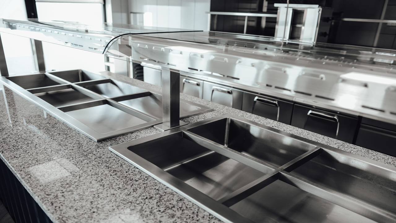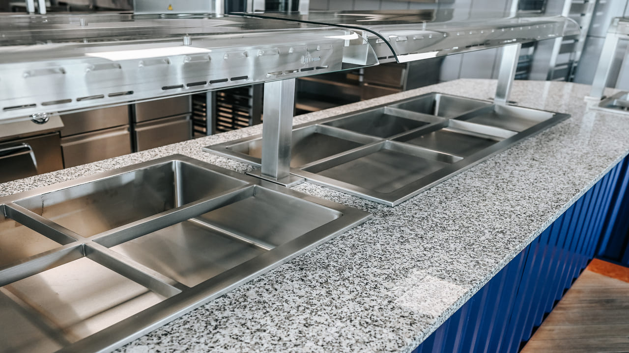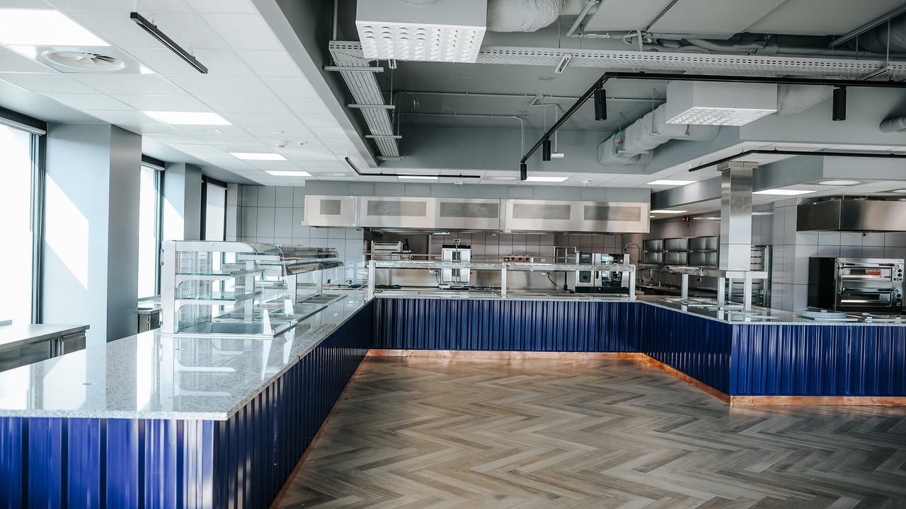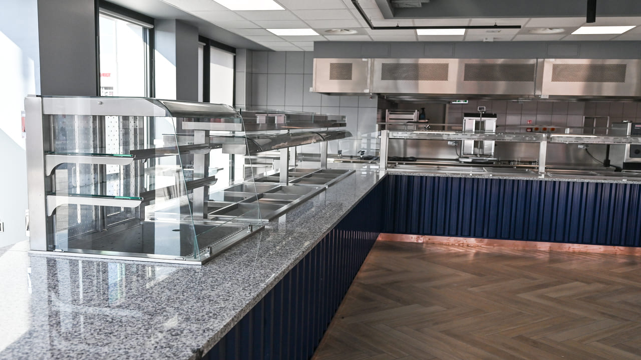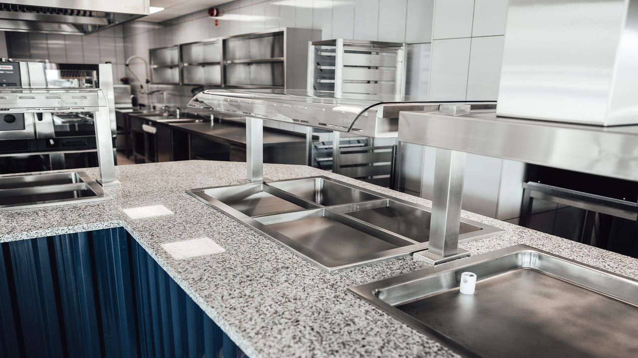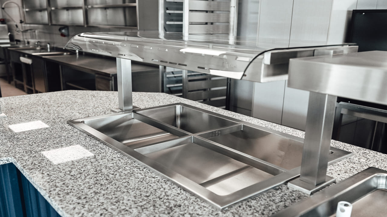 W ramach realizacji firma Komat wykonała ciąg wydawczy dostosowany do potrzeb zaplecza gastronomicznego w obiekcie. Zastosowano meble ze stali nierdzewnej, gwarantujące trwałość, higienę i ergonomię użytkowania. Całość została zaprojektowana z dbałością o spójność z charakterem wnętrza.