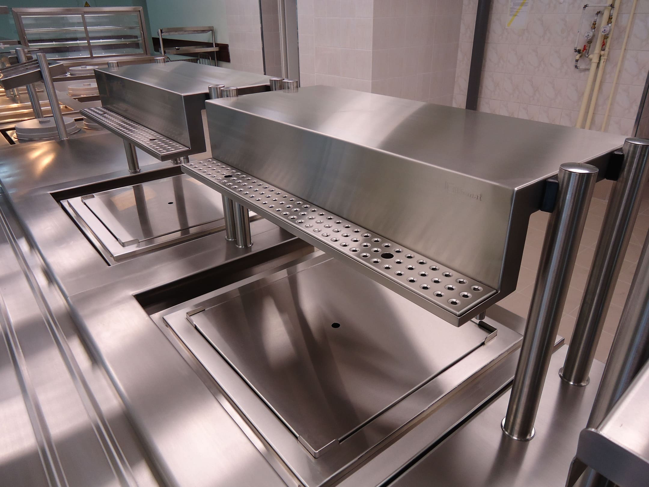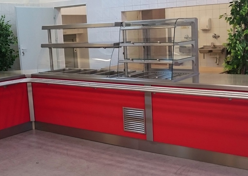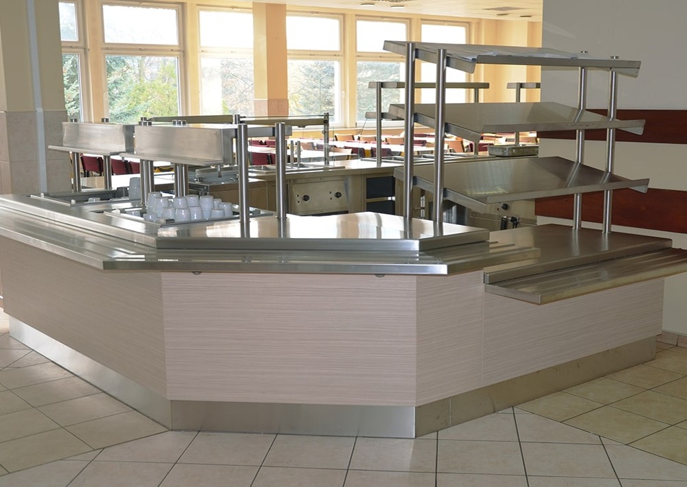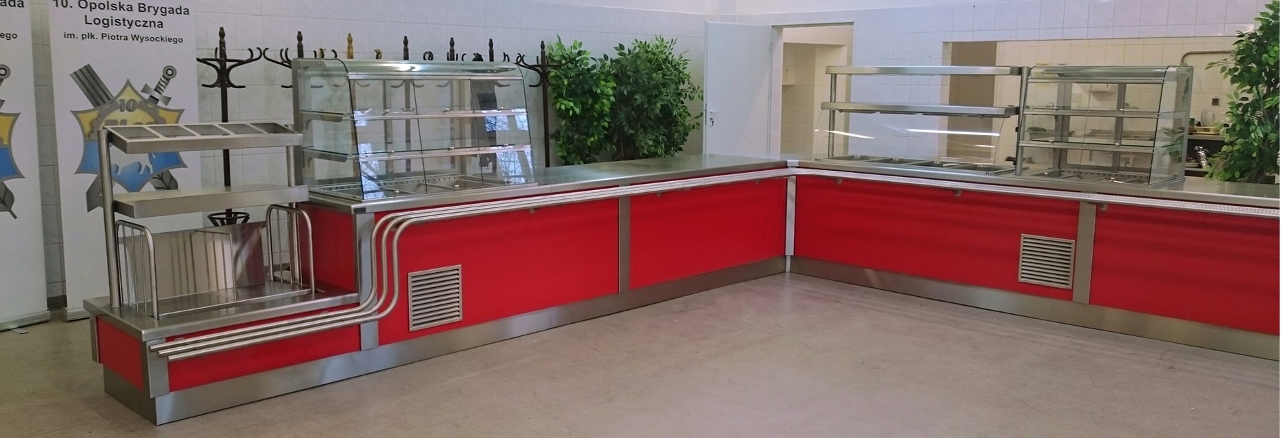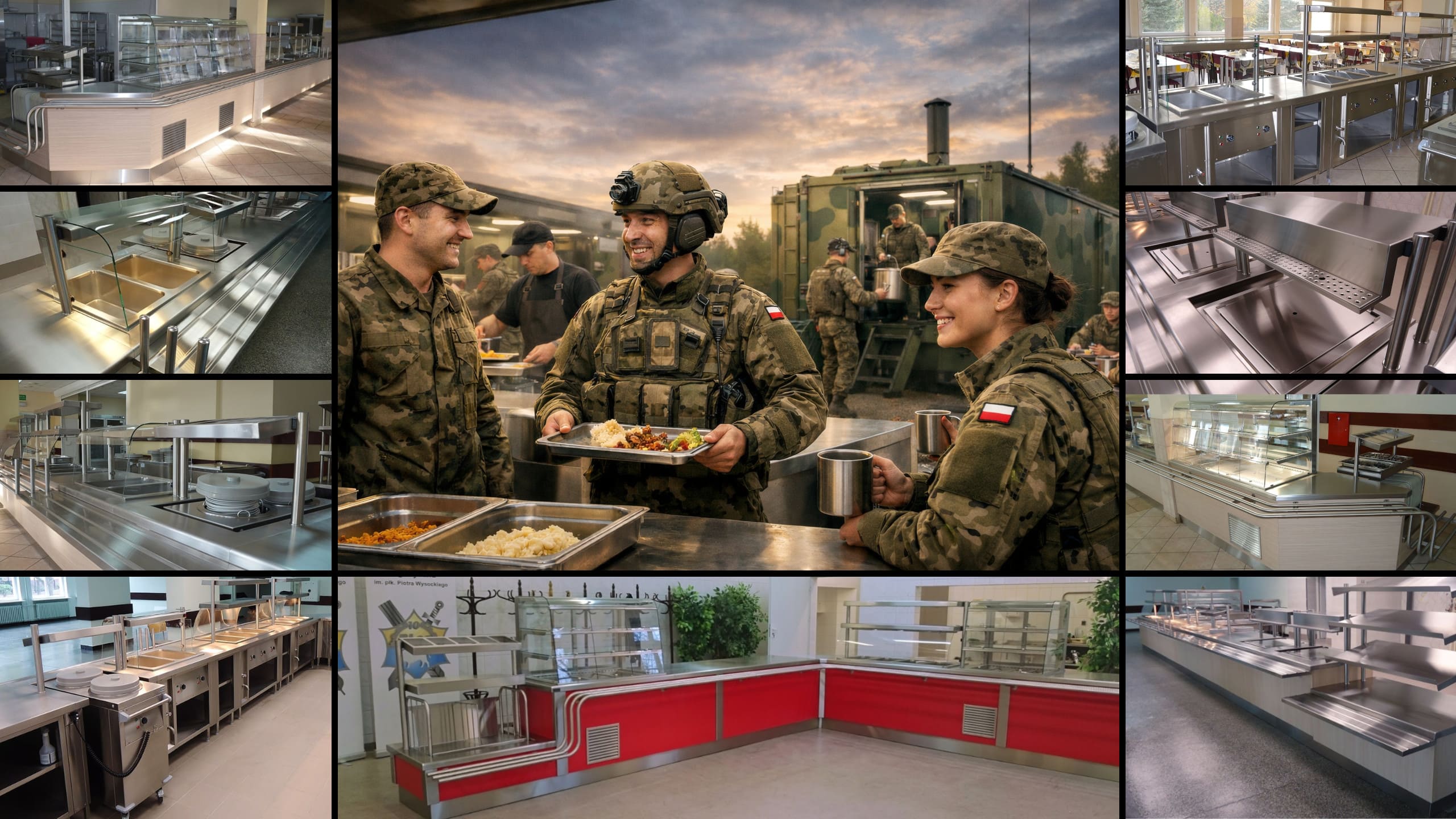 Firma Komat dostarcza kompleksowe rozwiązania dla zapleczy gastronomicznych w jednostkach wojskowych. Nasze meble neutralne, urządzenia gastronomiczne oraz ciągi wydawcze są projektowane z myślą o specyfice wojskowych stołówek, gdzie kluczowe są niezawodność, trwałość i łatwość utrzymania czystości. Dzięki modułowej konstrukcji ciągów wydawczych, możliwe jest ich dostosowanie do indywidualnych potrzeb każdej jednostki, zapewniając sprawne i efektywne wydawanie posiłków nawet w najbardziej wymagających warunkach. Wszystkie elementy wykonane są ze stali nierdzewnej najwyższej jakości, co gwarantuje długotrwałe użytkowanie i odporność na intensywną eksploatację.